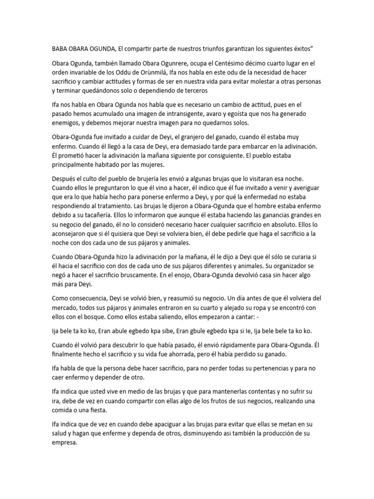 Por otro lado Ifa nos habla, en la siguiente publicación del libro de Osamaro, la siguiente historia: