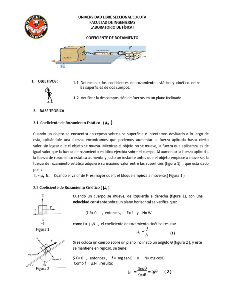 1. OBJETIVOS: 1.1 Determinar los coeficientes de rozamiento estático y cinético entre