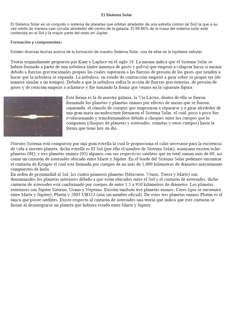 una gran masa incandescente formaron el Sistema Solar, el cual, poco a poco fue