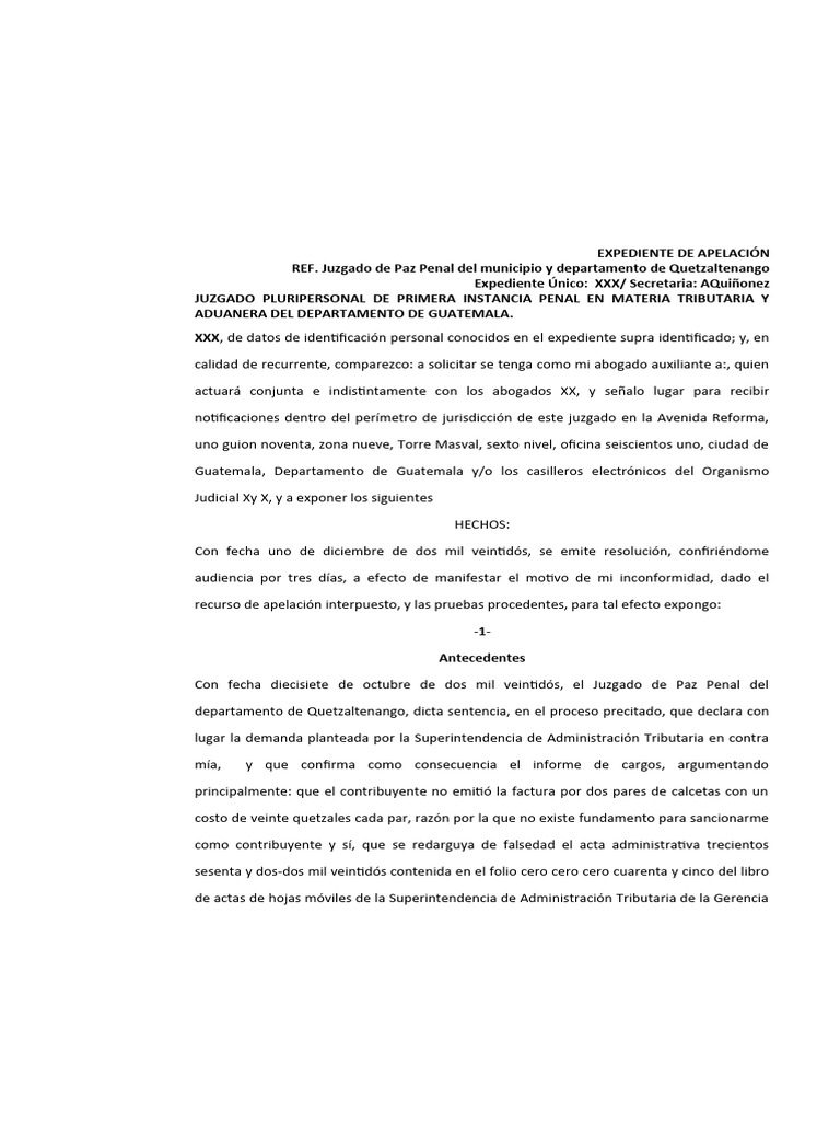 Adjuntamos cinco copias de este memorial. Quetzaltenango, doce de diciembre de dos mil