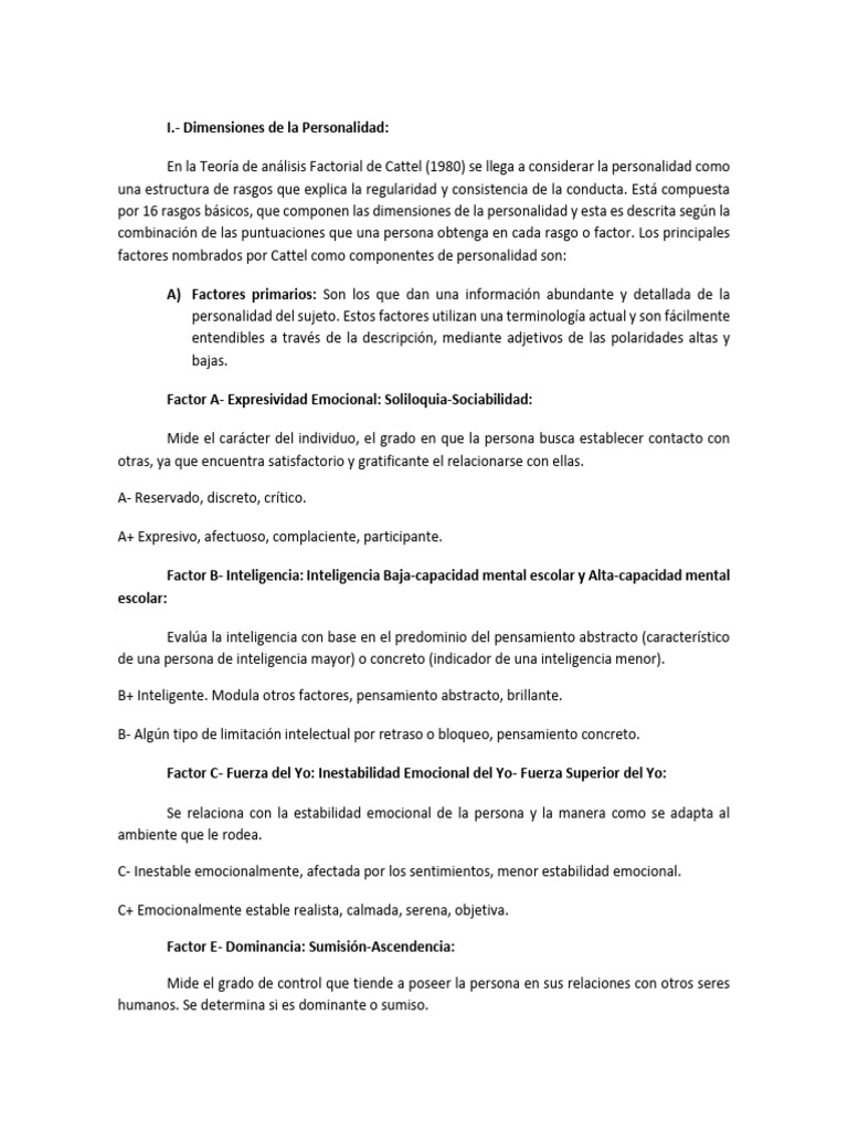 - Dimensiones de la Personalidad: