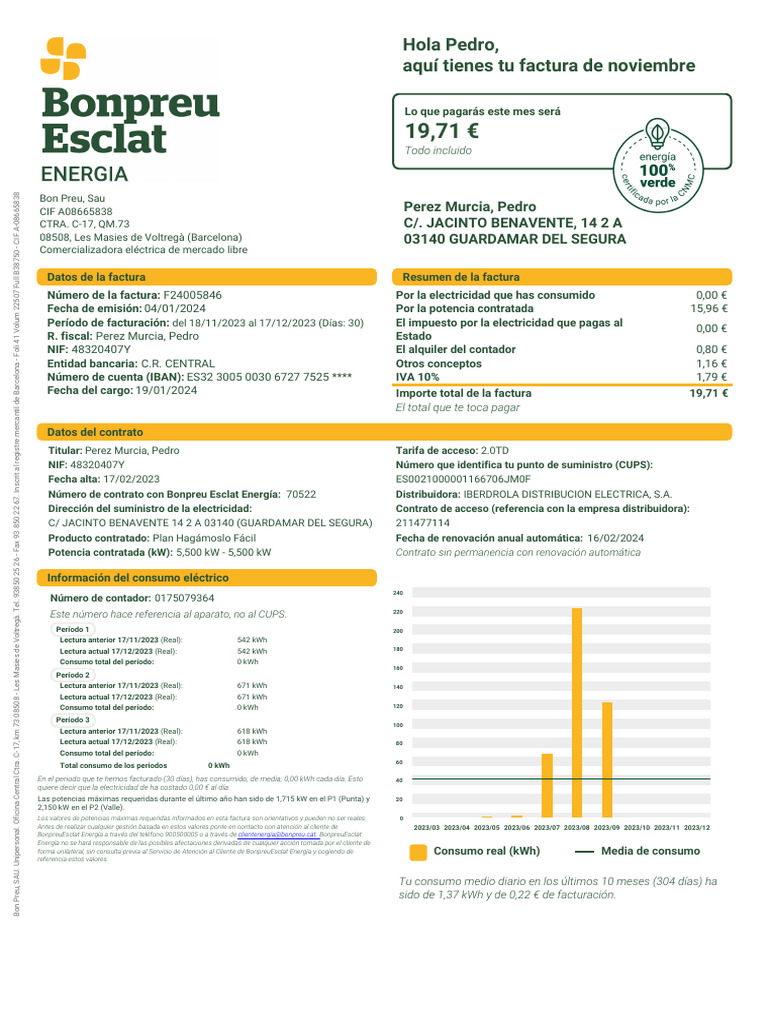 aquí tienes tu factura de noviembre