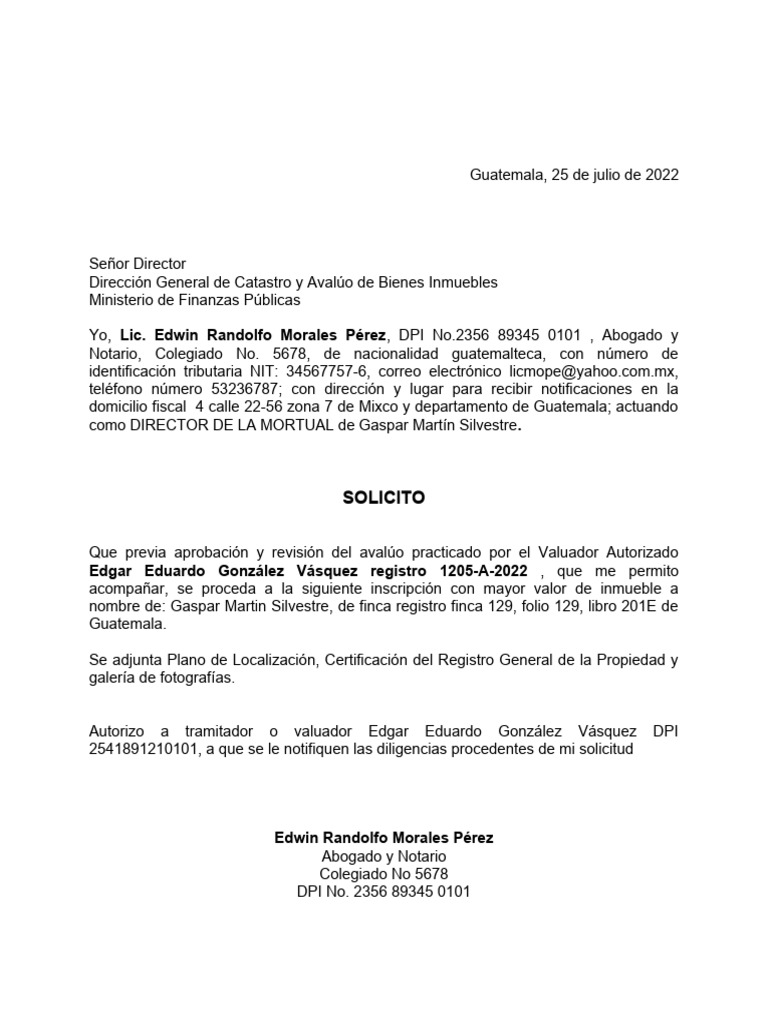 Autorizo a tramitador o valuador Edgar Eduardo González Vásquez DPI