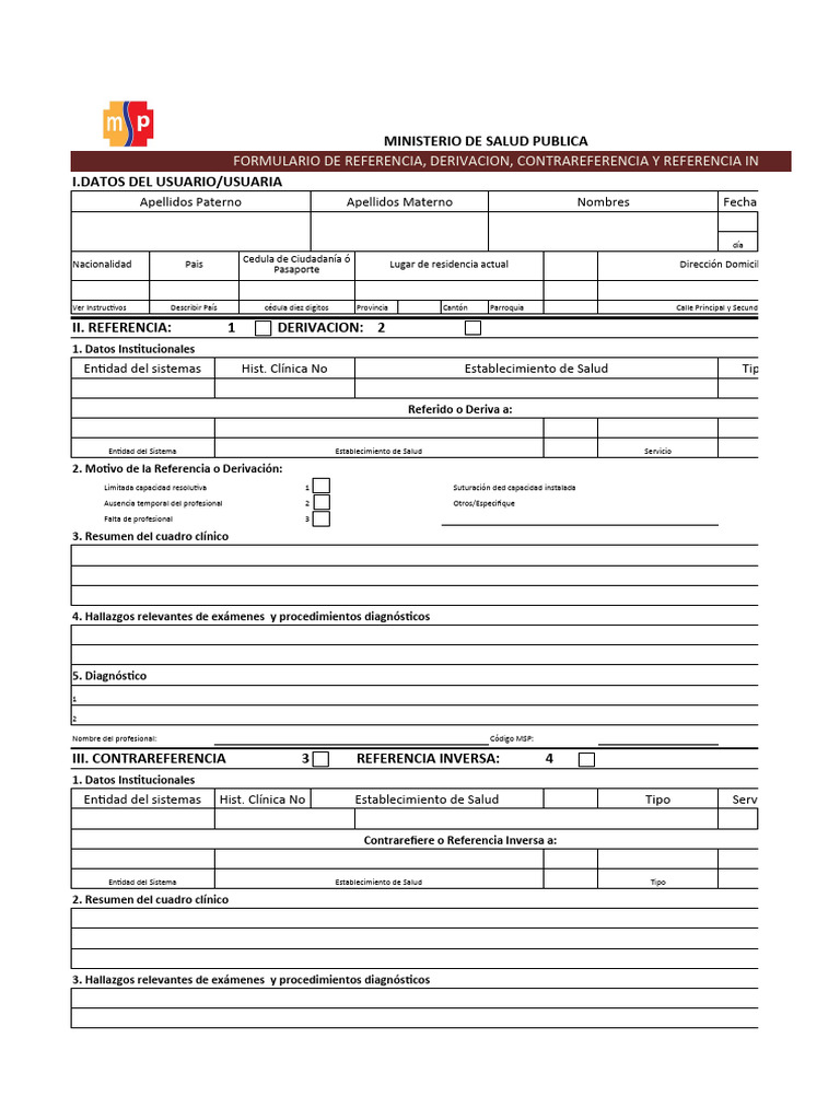 FORMULARIO DE REFERENCIA, DERIVACION, CONTRAREFERENCIA Y REFERENCIA INVERSA