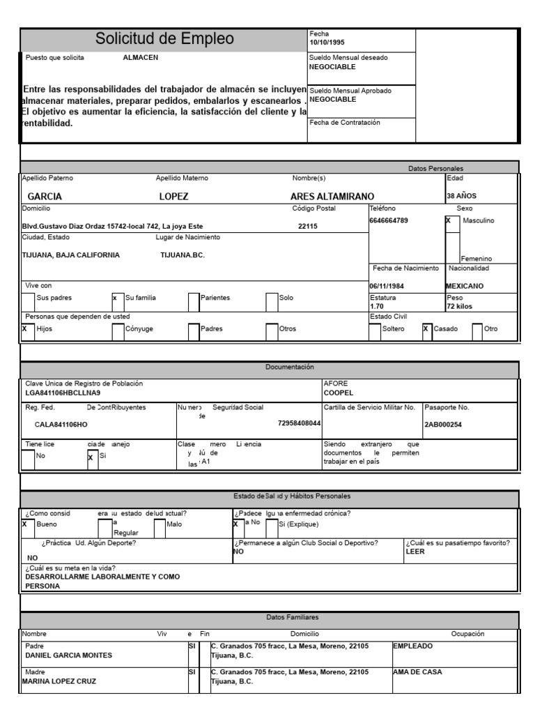 Puesto que solicita ALMACEN Sueldo Mensual deseado
