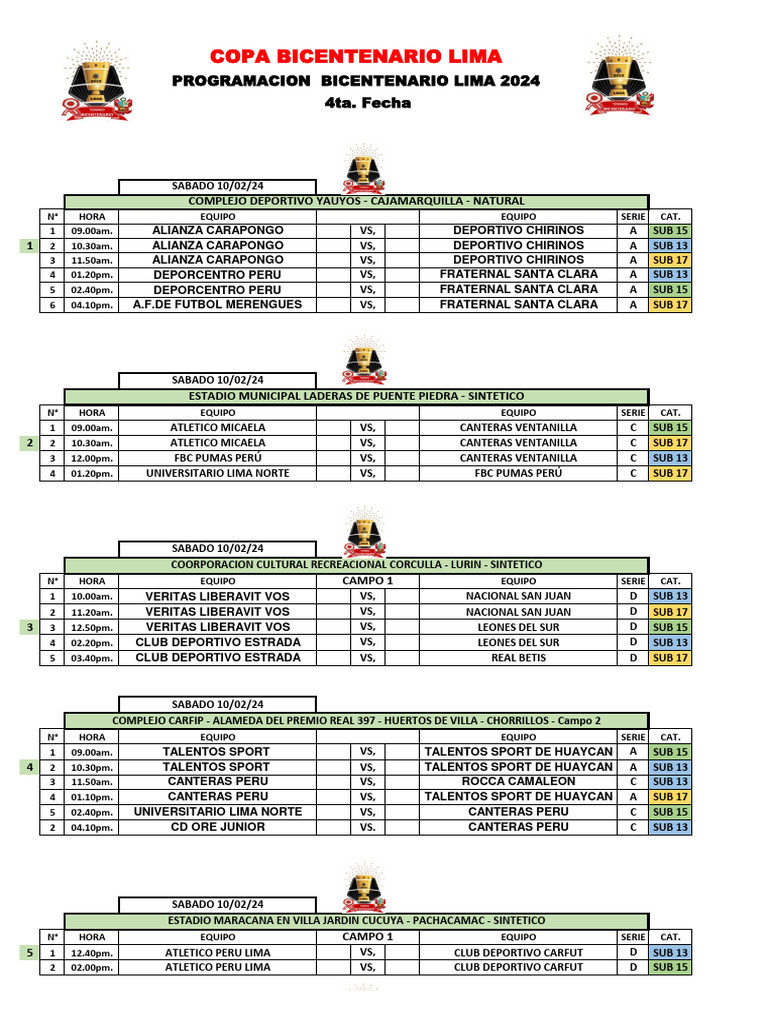 5 1 12.40pm. ATLETICO PERU LIMA VS, CLUB DEPORTIVO CARFUT D SUB 13