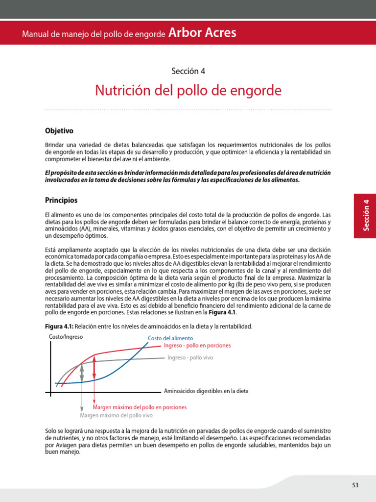 ave son críticos. Por lo tanto, se recomienda que se formulen alimentos para los pollos de engorde según los AA