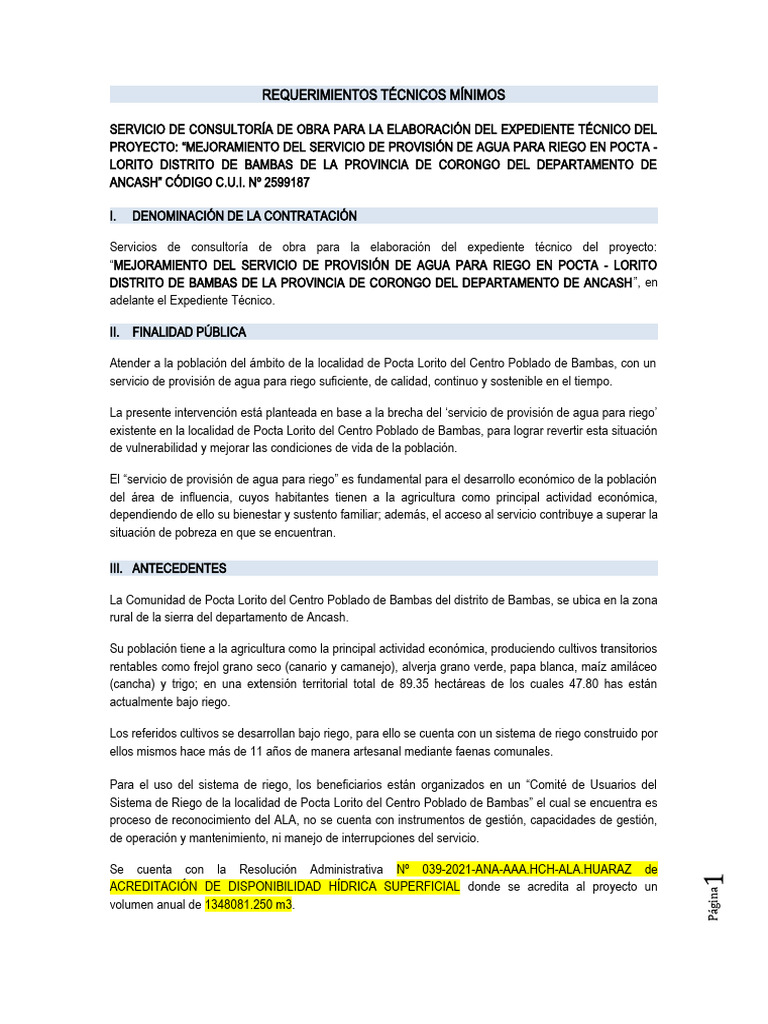 Sistema de Riego de la localidad de Pocta Lorito del Centro Poblado de Bambas” el cual se encuentra es