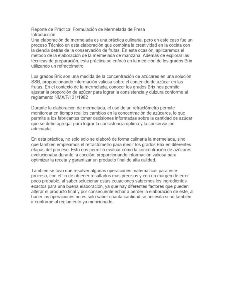 Reporte de Práctica: Formulación de Mermelada de Fresa