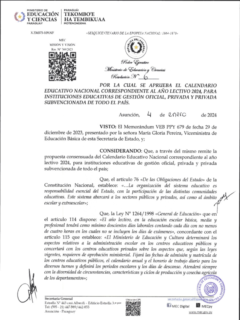 2024, para instituciones educativas de gestión oficial, privada y privada