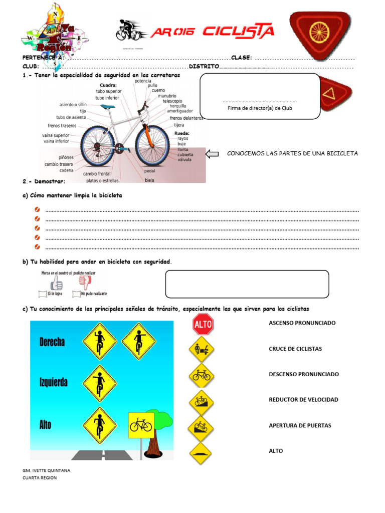 requisitos de la especialidad de CICLISTA que otorga el ministerio de Aventureros por constancia se firma al pie del informe