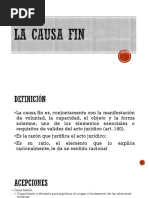 • La causa fin, llamada causa final, es la finalidad perseguida por el sujeto