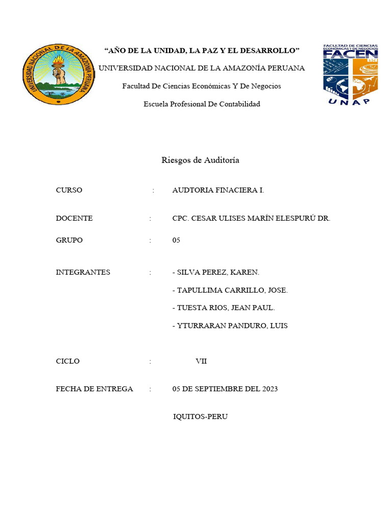 ante ello estan propensos a presentarse riesgos en trabajo de auditoría.