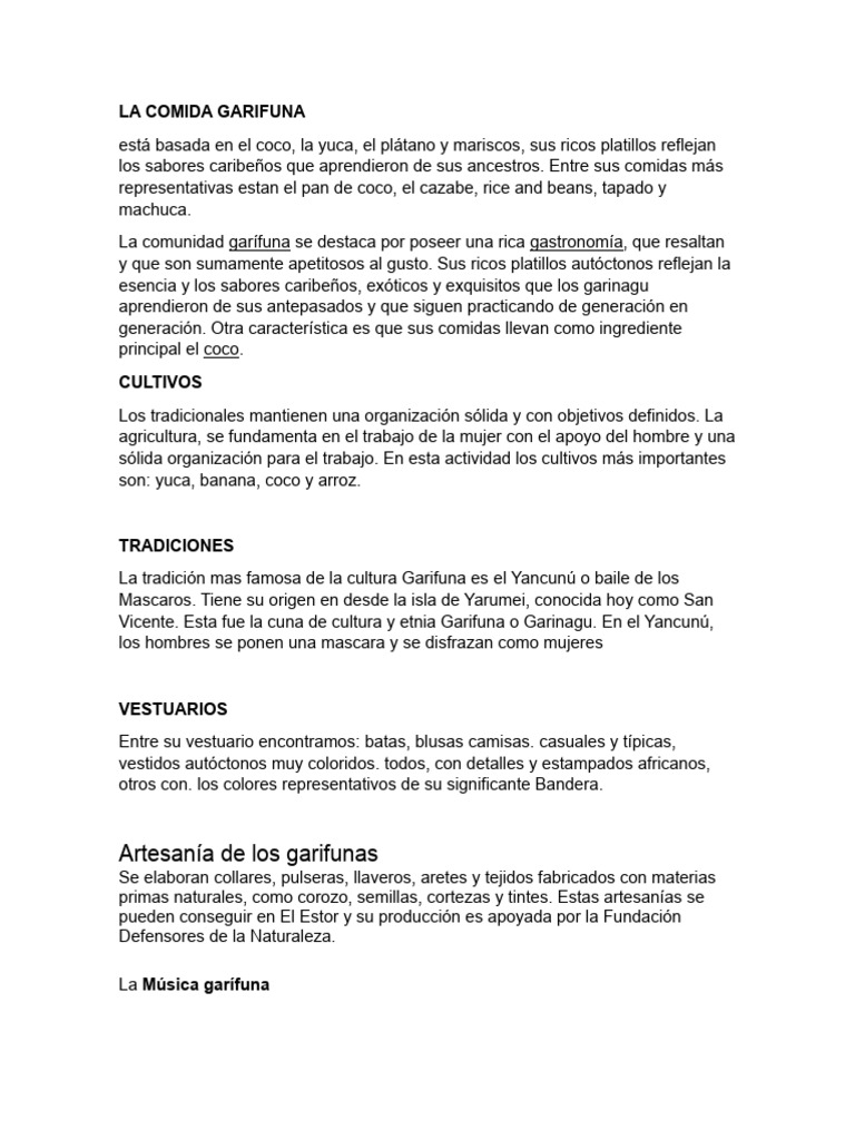 Vicente. Esta fue la cuna de cultura y etnia Garifuna o Garinagu. En el Yancunú,