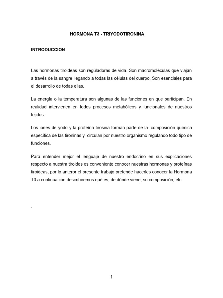 La triyodotironina (T3) es una hormona tiroidea. Juega un papel importante en el