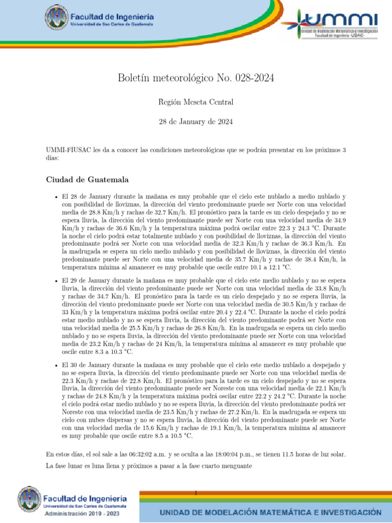 UMMI-FIUSAC les da a conocer las condiciones meteorológicas que se podrán presentar en los próximos 3
