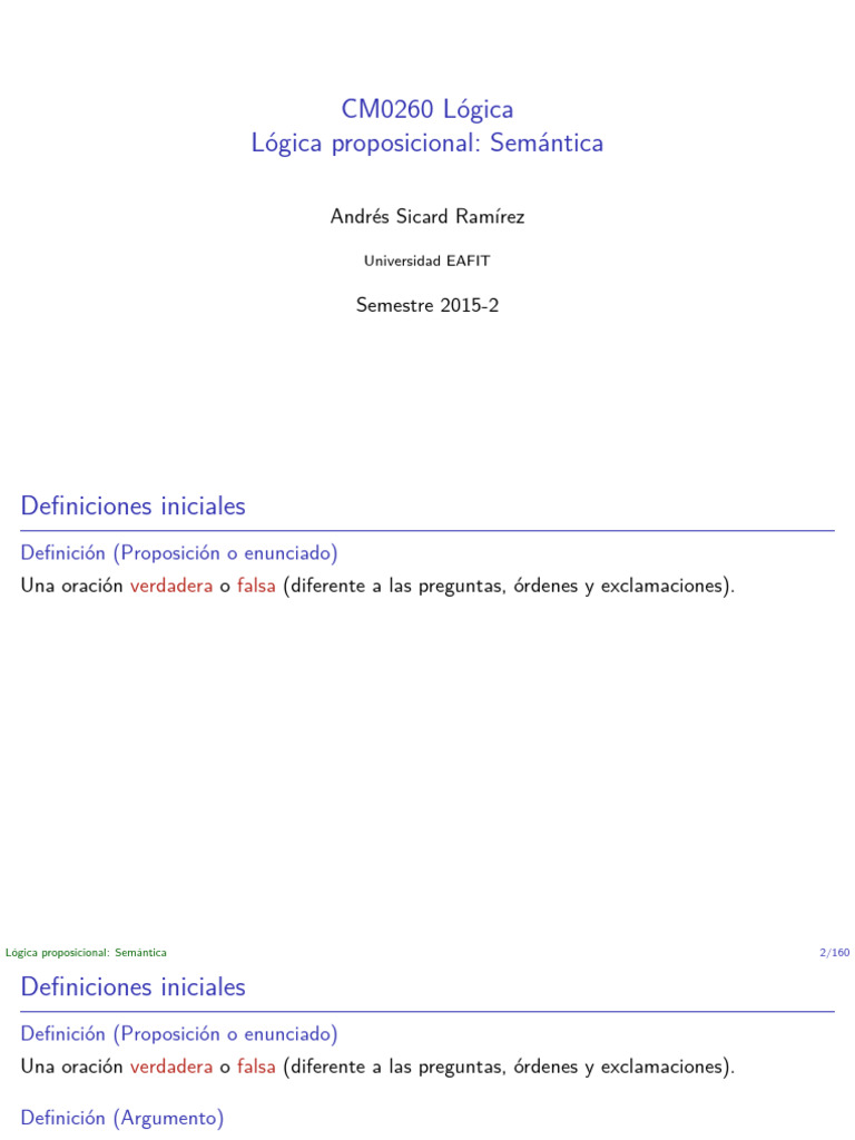 Lógica proposicional: Semántica Determinar la verdad o falsedad de las premisas es tarea de la ciencia en general, 7/160