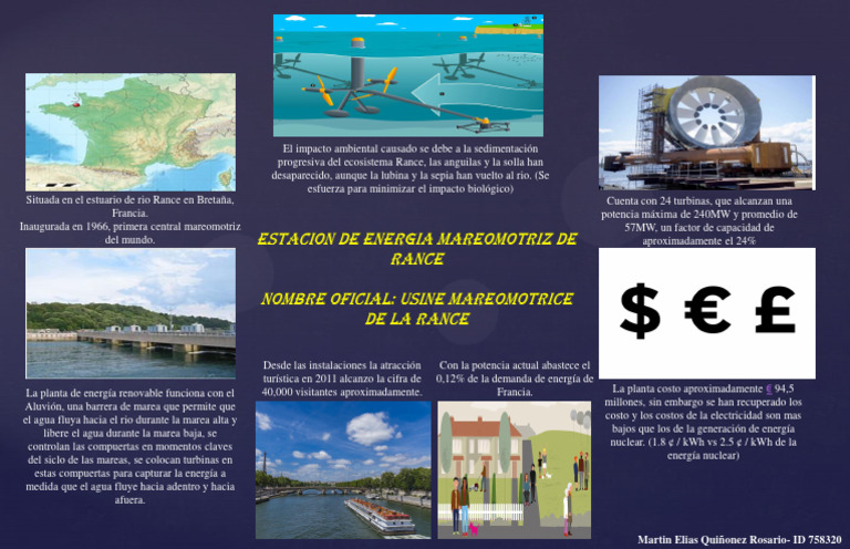 Inaugurada en 1966, primera central mareomotriz 57MW, un factor de capacidad de