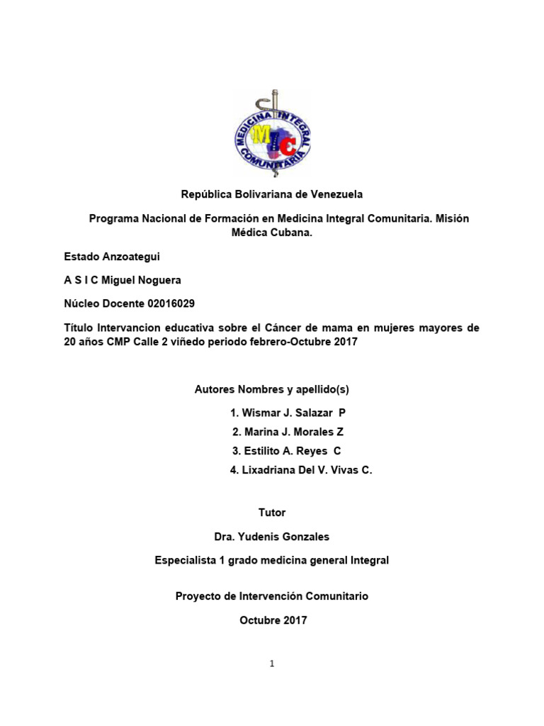 21. Ginorio N. y colaboradores. Intervención educativa sobre cáncer de mamas en