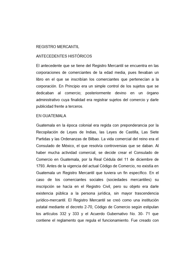 Guatemala un Registro Mercantil que tuviera un fin específico. En el