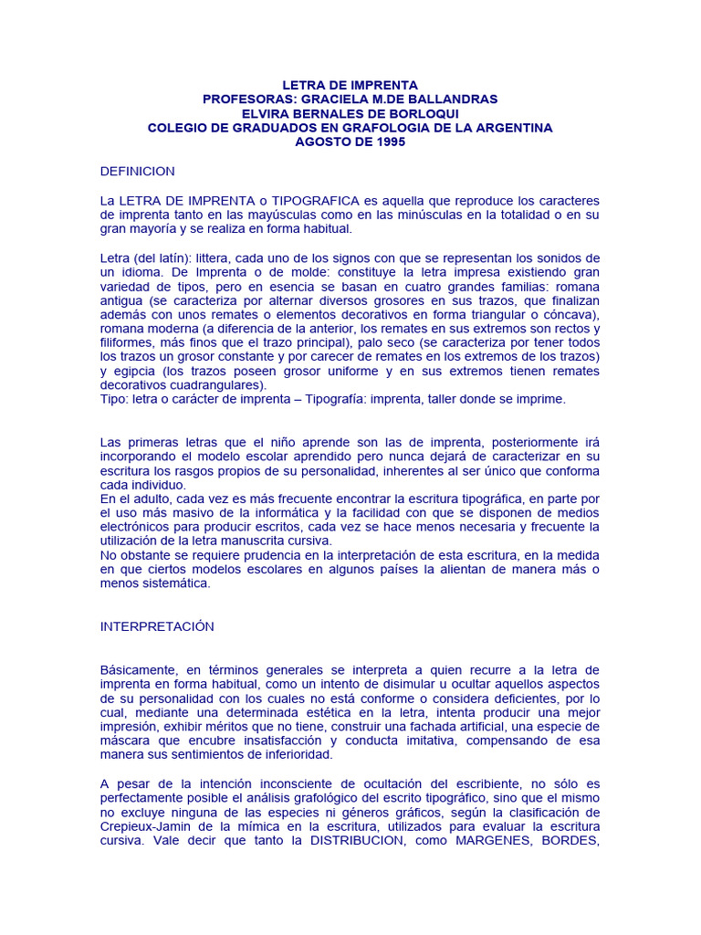 perfectamente posible el análisis grafológico del escrito tipográfico, sino que el mismo