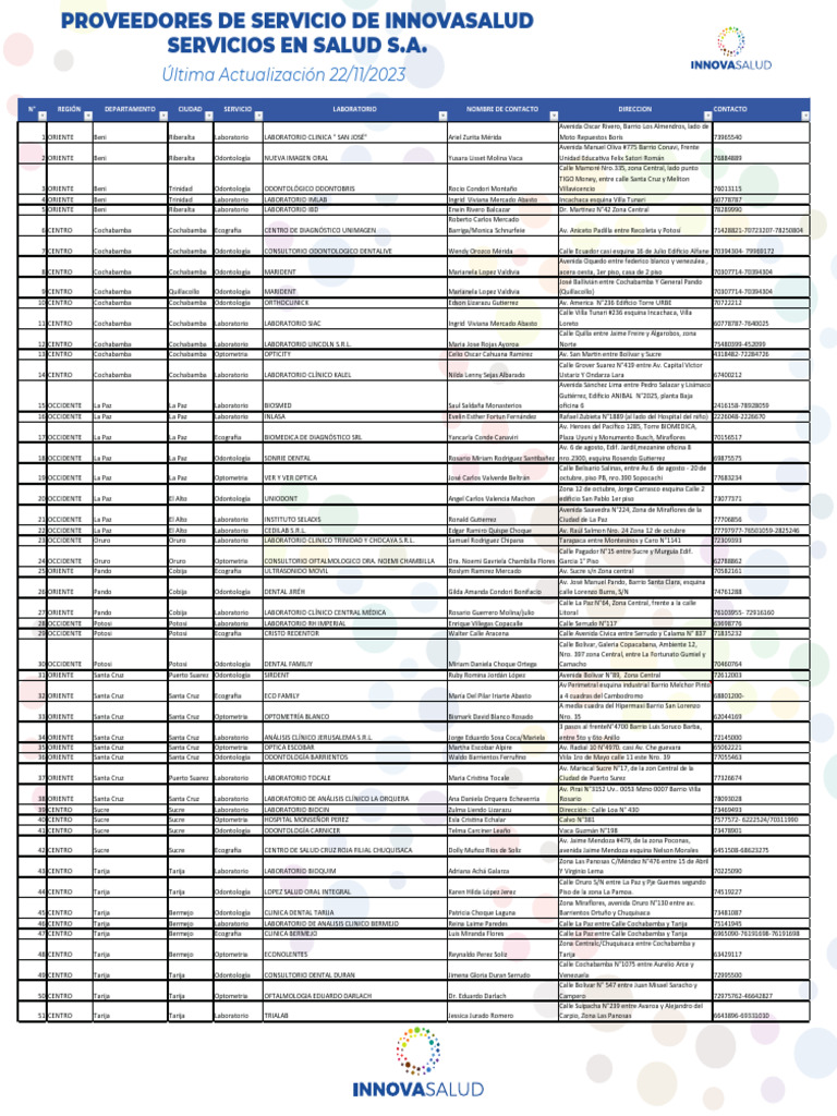 PROVEEDORES DE SERVICIO DE INNOVASALUD