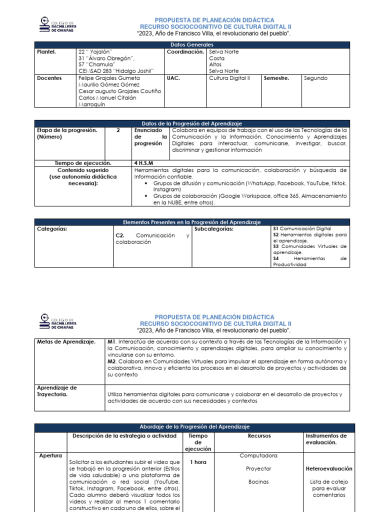 Docentes Felipe Grajales Gumeta UAC. Cultura Digital II Semestre. Segundo