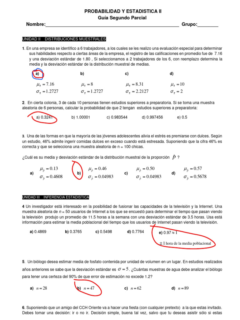 UNIDAD II DISTRIBUCIONES MUESTRALES