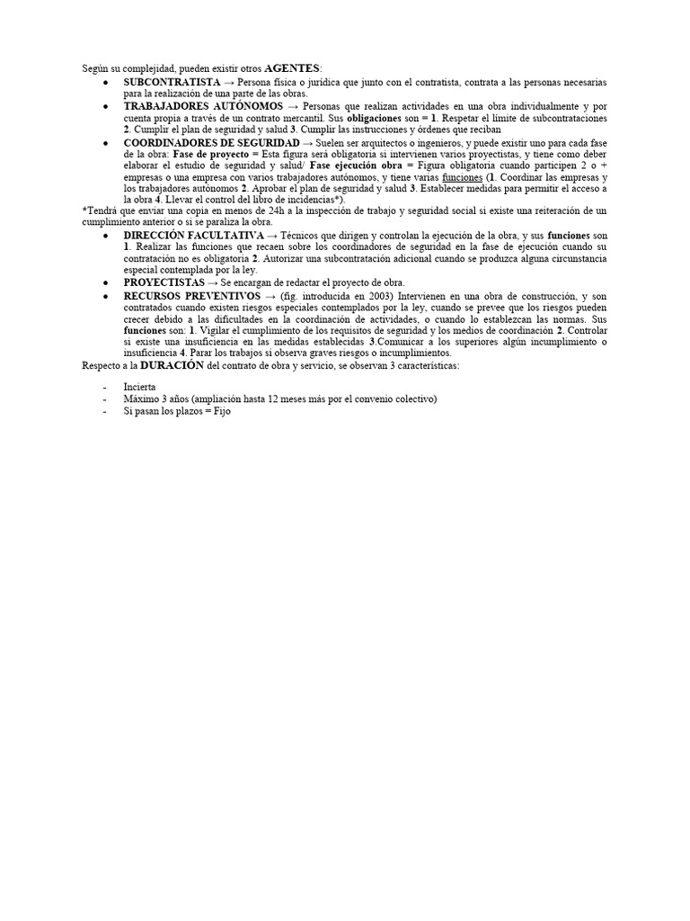 RECURSOS PREVENTIVOS → (fig. introducida en 2003) Intervienen en una obra de construcción, y son