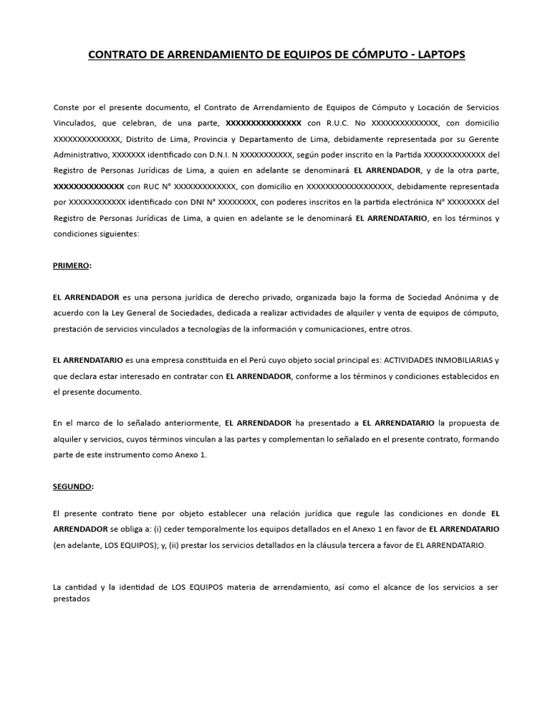 CONTRATO DE ARRENDAMIENTO DE EQUIPOS DE CÓMPUTO - LAPTOPS
