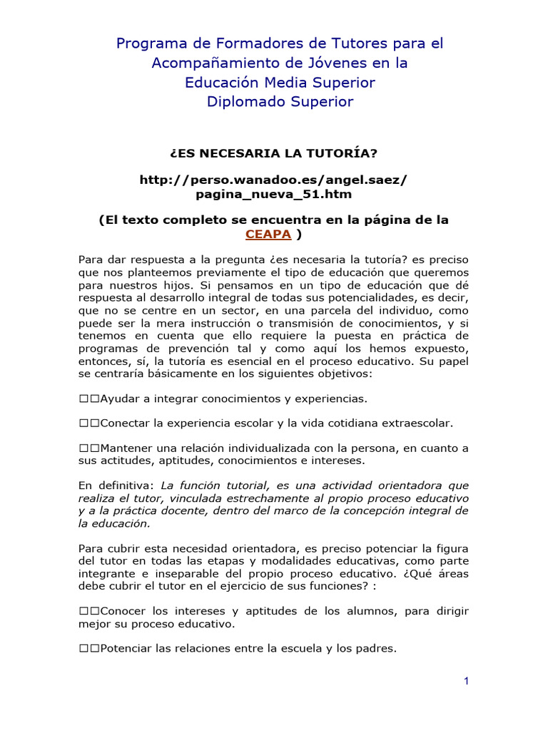 Para dar respuesta a la pregunta ¿es necesaria la tutoría? es preciso