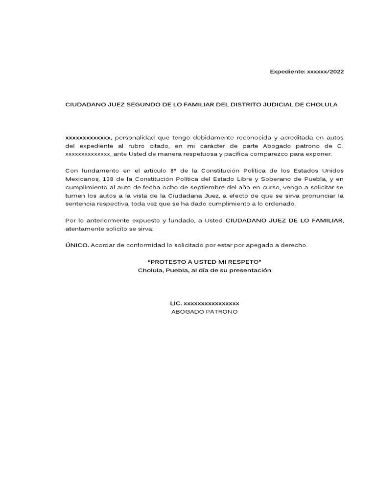 xxxxxxxxxxxxxx, ante Usted de manera respetuosa y pacifica comparezco para exponer: