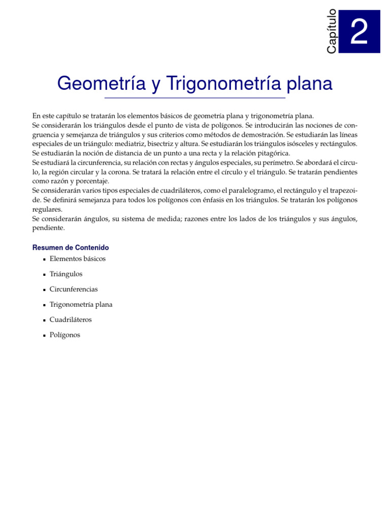 En este capítulo se tratarán los elementos básicos de geometría plana y trigonometría plana.