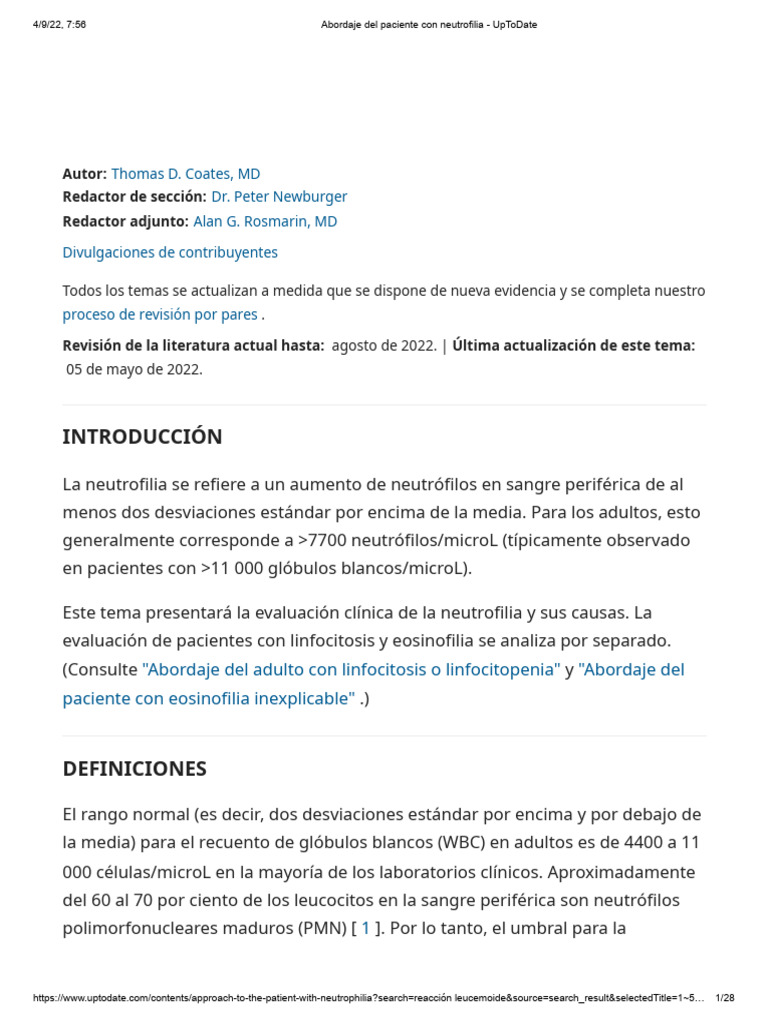 4/9/22, 7:56 Abordaje del paciente con neutrofilia - UpToDate