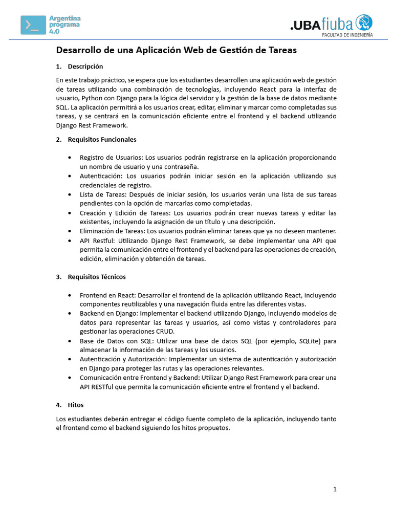 En este segundo hito, los estudiantes trabajarán en el desarrollo del backend utilizando Django