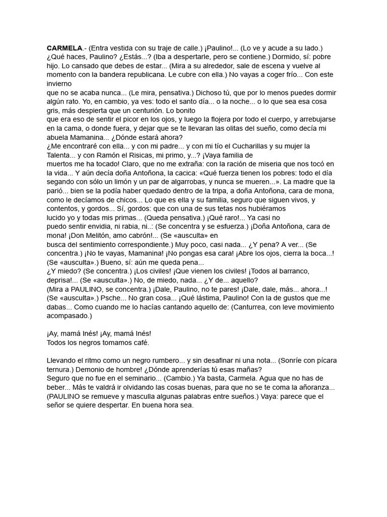 CARMELA.- (Entra vestida con su traje de calle.) ¡Paulino!... (Lo ve y acude a su lado.
