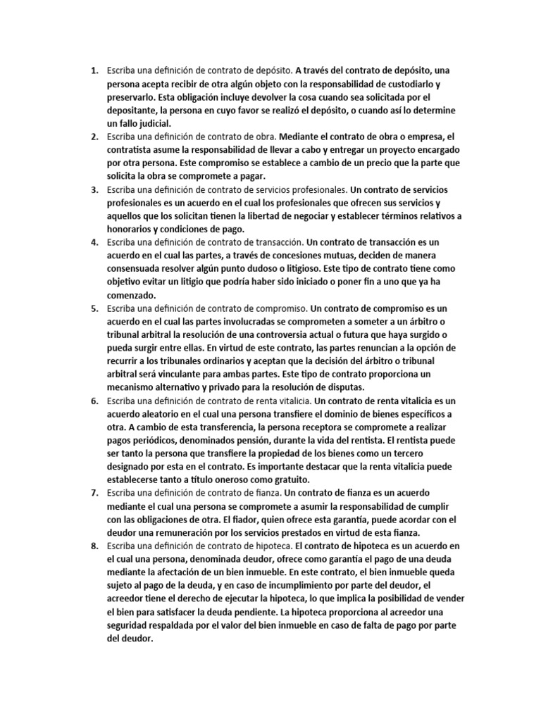 8. Escriba una definición de contrato de hipoteca. El contrato de hipoteca es un acuerdo en