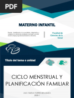 Cognitivo: entenderán la importancia de la La planificación familiar se basa en el Exposición sobre la Apoyo de una presentación Al concluir con la 30 a 35 min.