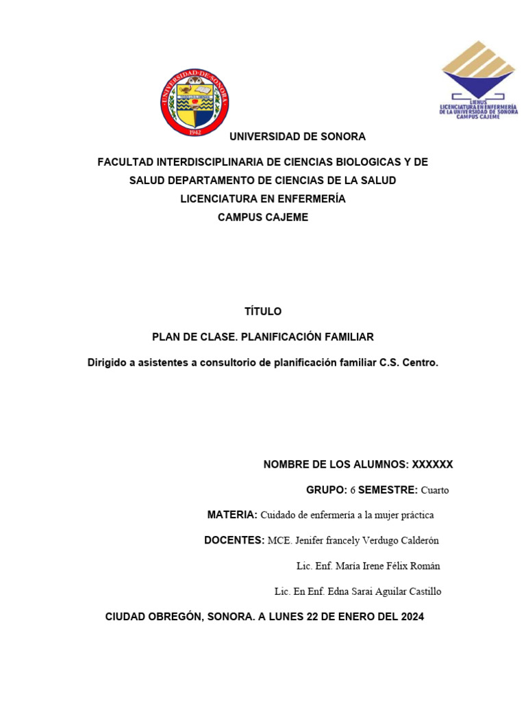 PLAN DE CLASE. PLANIFICACIÓN FAMILIAR