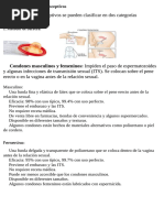 • Anticonceptivos de barrera masculinos (condón) y femeninos (condón, diafragma;