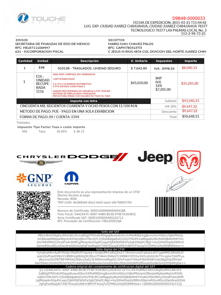 TRIP UUID: 6e2692d4-d2e2-4a42-aaa1-e9c7b80072fe CFDI emitido a través de