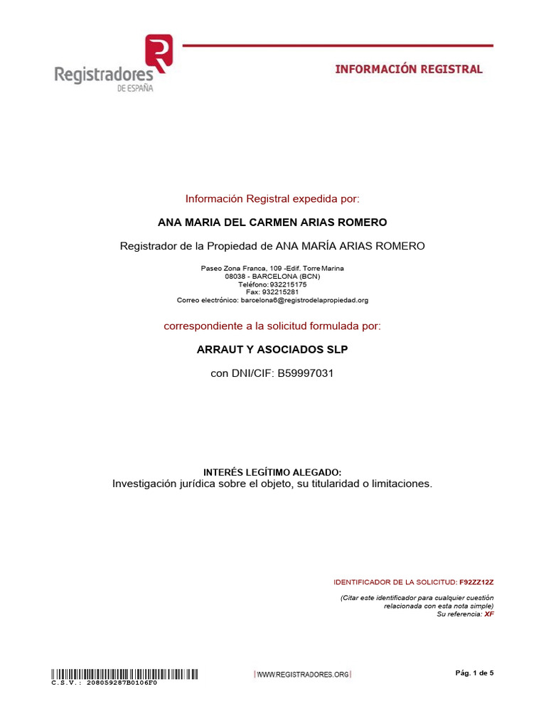Registrador de la Propiedad de ANA MARÍA ARIAS ROMERO