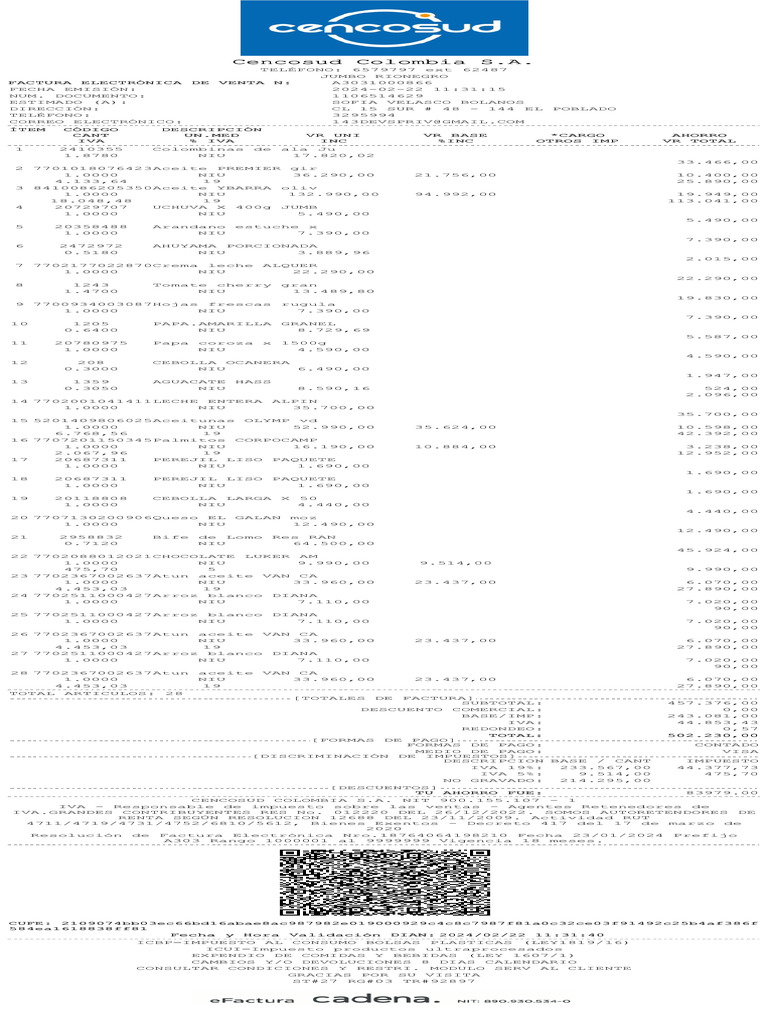 CENCOSUD COLOMBIA S.A. NIT 900.155.107 - 1