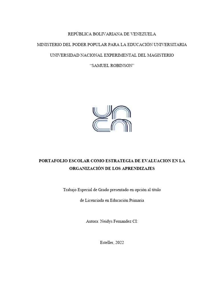 Descriptores: PORTAFOLIO ESCOLAR COMO ESTRATEGIA DE EVALUACION EN LA ORGANIZACIÓN