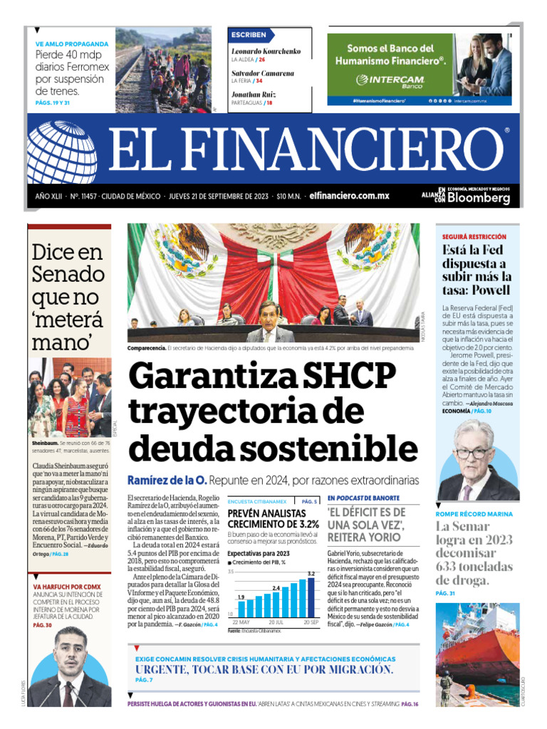 AÑO XLII · Nº. 11457 · CIUDAD DE MÉXICO · JUEVES 21 DE SEPTIEMBRE DE 2023 · $10 M.N. · elfinanciero.com.mx