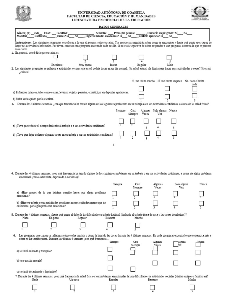 Instrucciones: Las siguientes preguntas se refieren a lo que tú piensas sobre tu salud. Tus respuestas permitirán saber cómo te encuentras y hasta qué punto eres capaz de