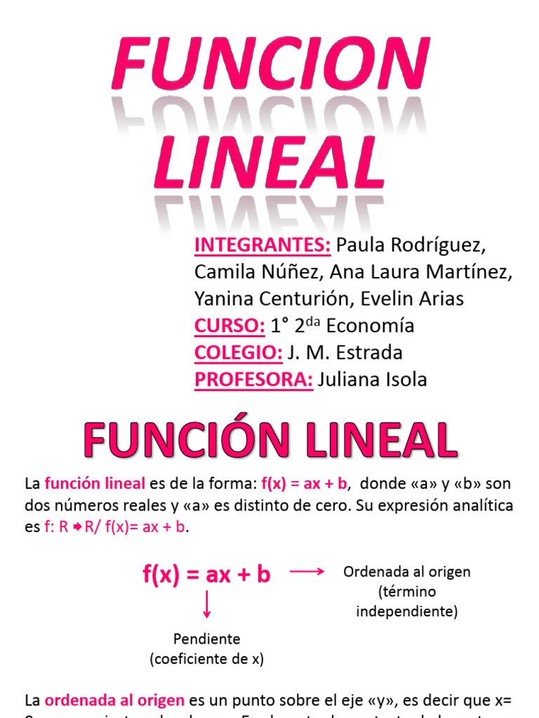La función lineal es de la forma: f(x) = ax + b, donde «a» y «b» son