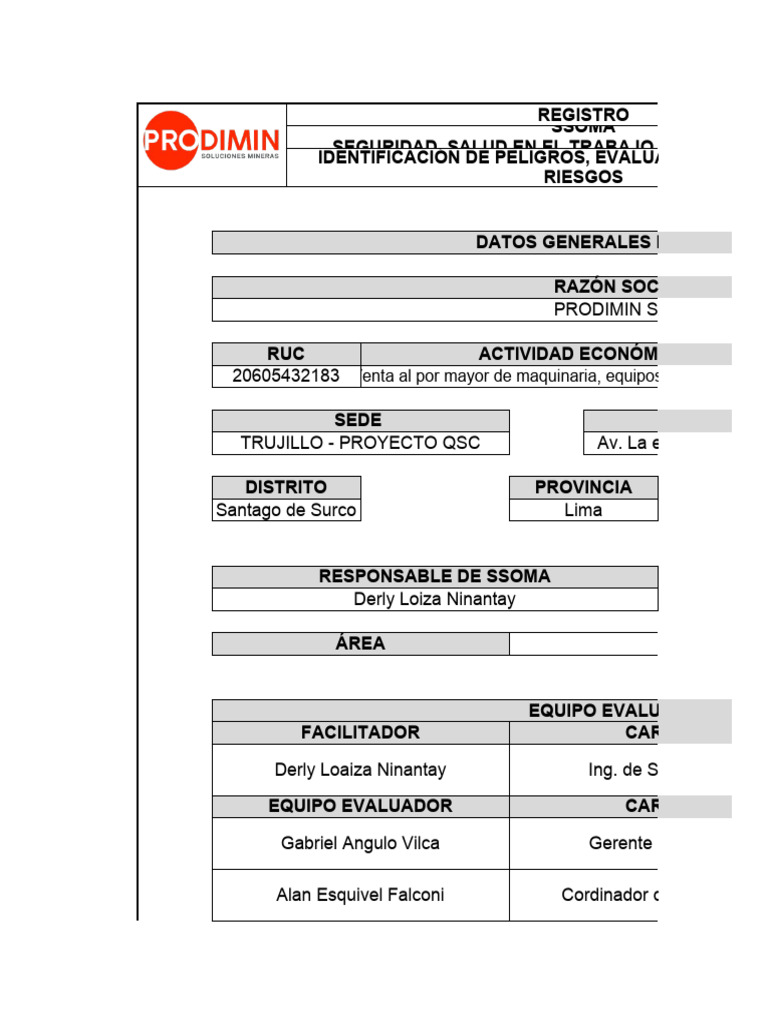 Revisar siempre el estandar IDENTIFICACION DE PELIGROS, EVALUACION Y CONTROL DE RIESGOS(IPERC), y las matrices IPERC