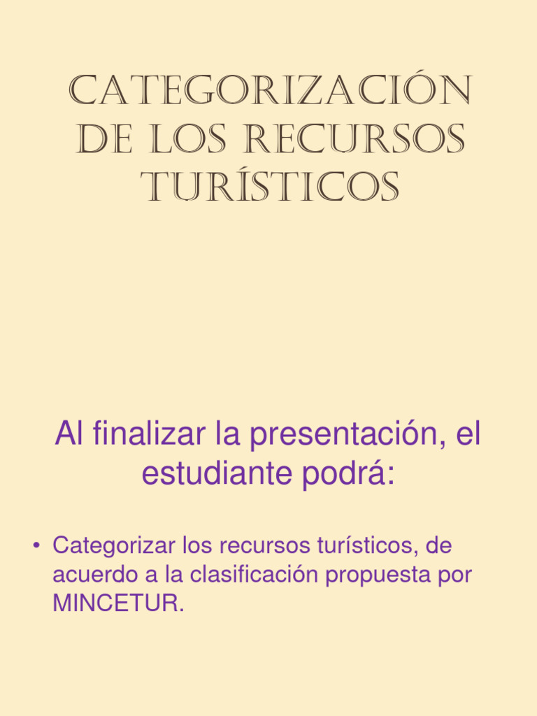 • Categorizar los recursos turísticos, de