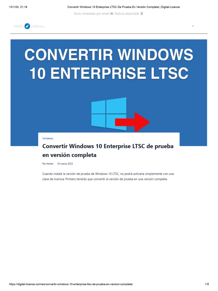 13/1/24, 21:18 Convertir Windows 10 Enterprise LTSC De Prueba En Versión Completa | Digital-Licence
